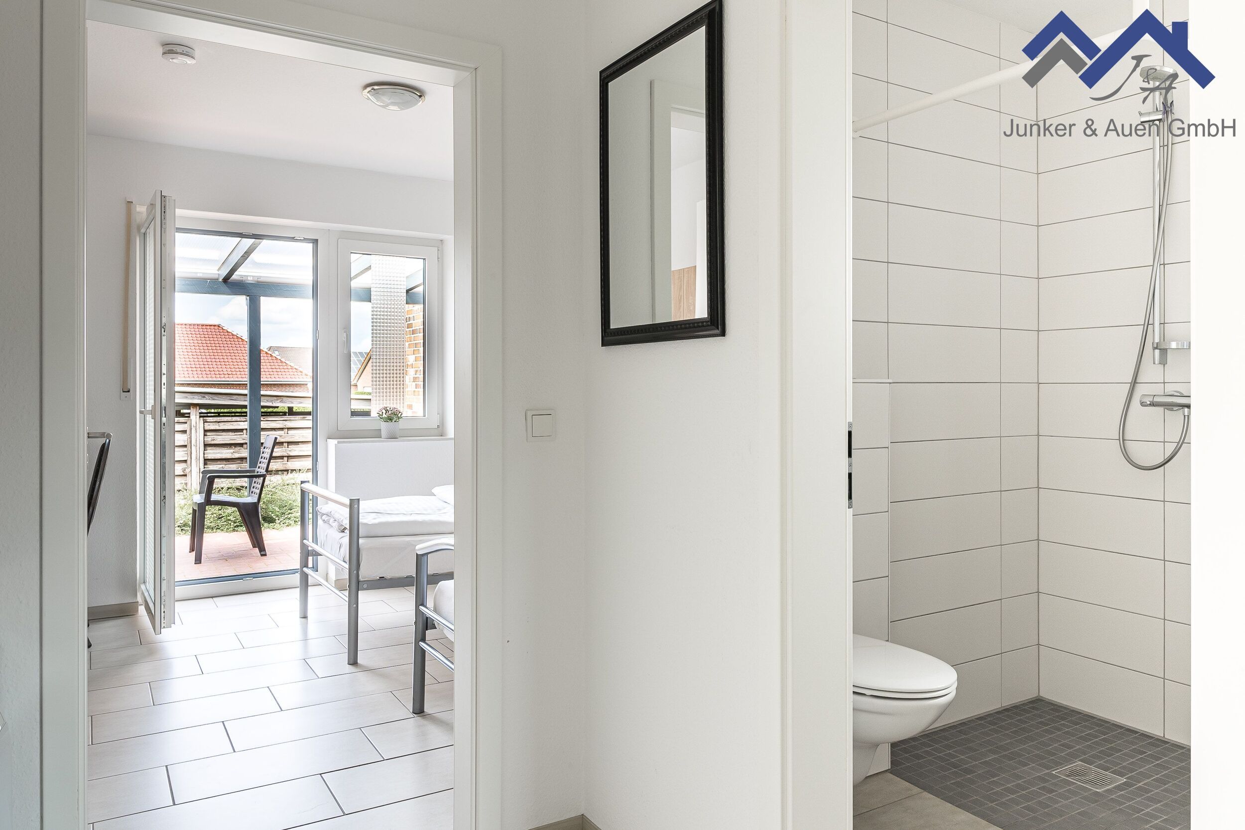 Haus Lange Str. für 2 Personen mit einem Doppelzimmer, Küche, Aufenthaltsbereich, Badezimmer und überdachter Terrasse